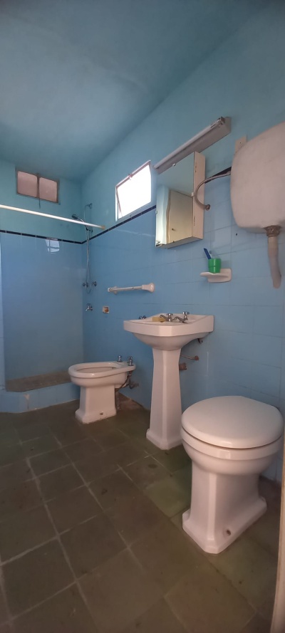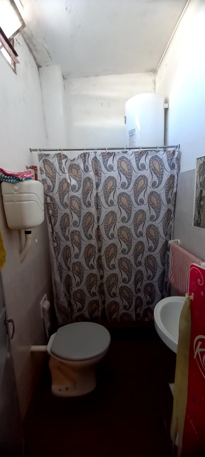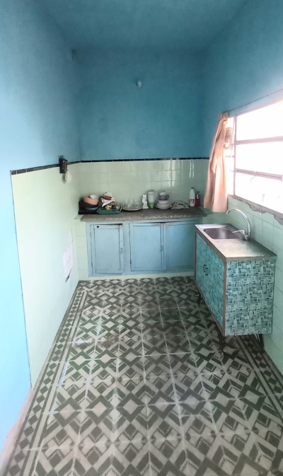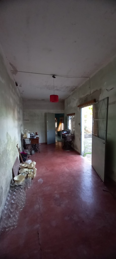 Casa al fondo: 2 dormitorios, estar- comedor, cocina, baño, galpón y patio con churrasquera.